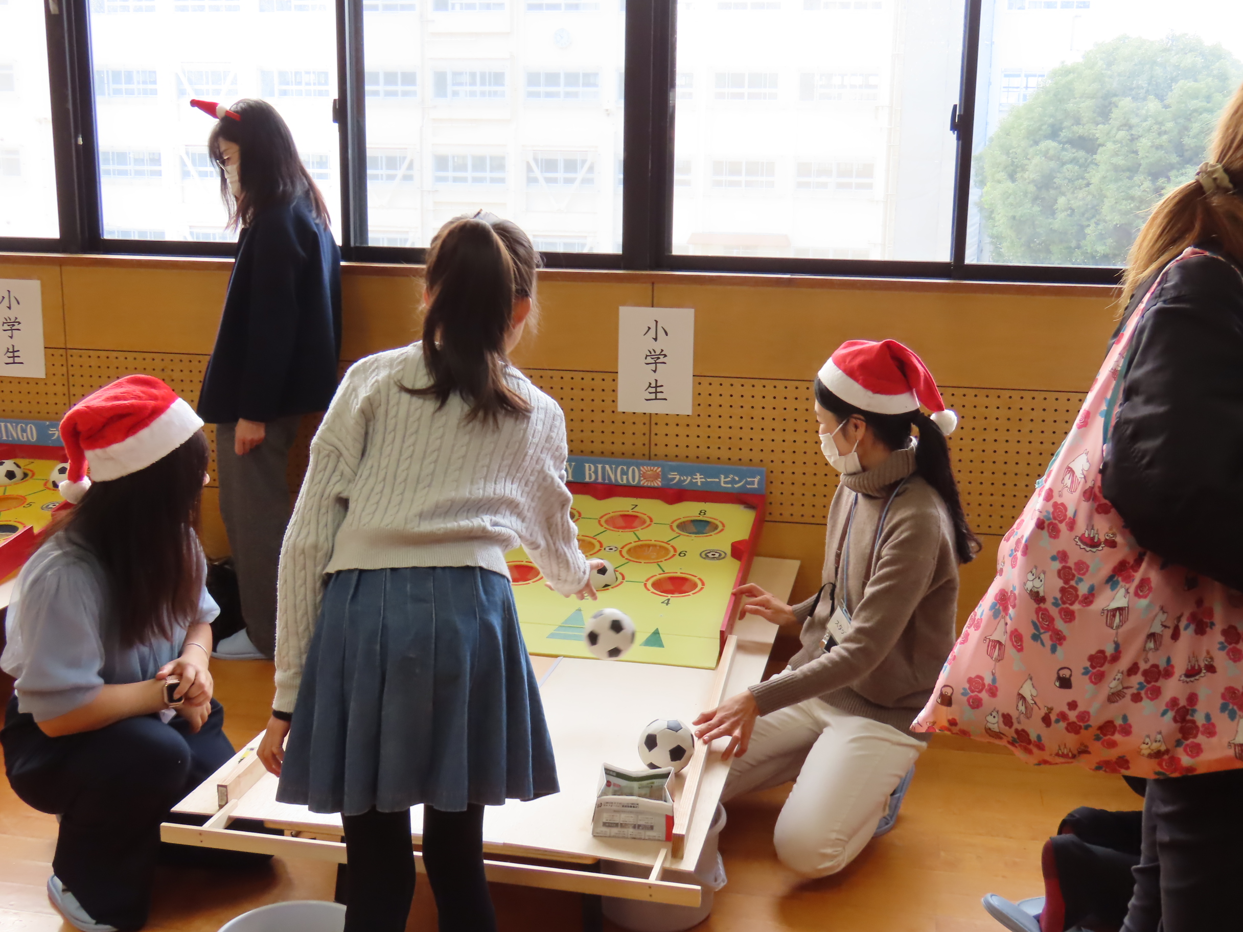 令和7年12月21日(日)、長崎市山里地区ふれあいセンター(長崎市高尾町)において、山里地区ふれあいセンター運営委員会主催の「山里ふれあいクリスマス会」が開催され、当センターから職員6名と外国人研究者や留学生2名が、またセンター以外の学内の留学生2名が運営の支援で参加しました。ラッキービンゴや射的、輪投げ、スマートボールが準備されており、参加した職員や留学生はゲーム運営をしながら、地域の子どもたちやその保護者の方々と交流しました。イベントの途中にはサンタクロースとトナカイが登場し、子どもたち全員にお菓子のプレゼントを配り、子供たちはとても喜んでいました。またイベントの最後には恒例のビンゴゲームがあり、会場は大いに盛り上がり、大盛況のうちに終了しました。